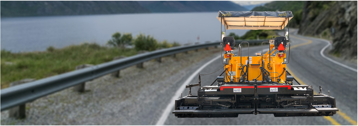 The APTEC Hydrostatic Sensor Paver ASP-550 is a dual-application paver powered by an Ashok Leyland 130HP BS-IV diesel engine with electronic controls. It provides paving widths of 5.75 m, hydraulically extendable from 2.5 to 4.5 m, with further 1.25 m possible using bolt-on extensions, following M.O.R.T.H specifications.